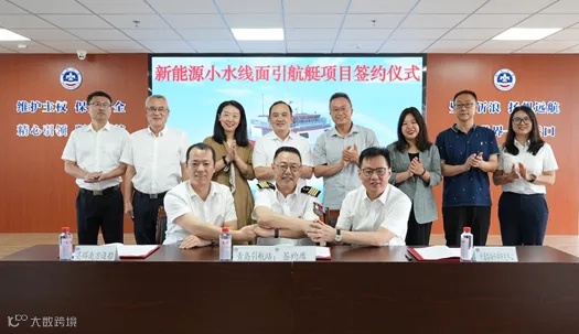 青岛市交通运输局副局长张子木,青岛引航站党总支书记、站长宋学斌,中国船舶科学研究中心所长叶聪,英辉南方造船总经理陈晓亮出席签约仪式。