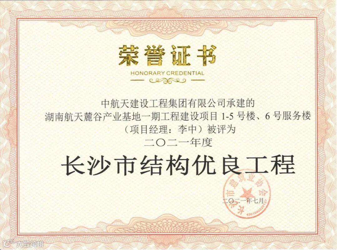 近日,中航天建设工程集团有限公司八公司承建的湖南航天麓谷产业基地一期工程建设项目获评2021年度“长沙市结构优良工程”。