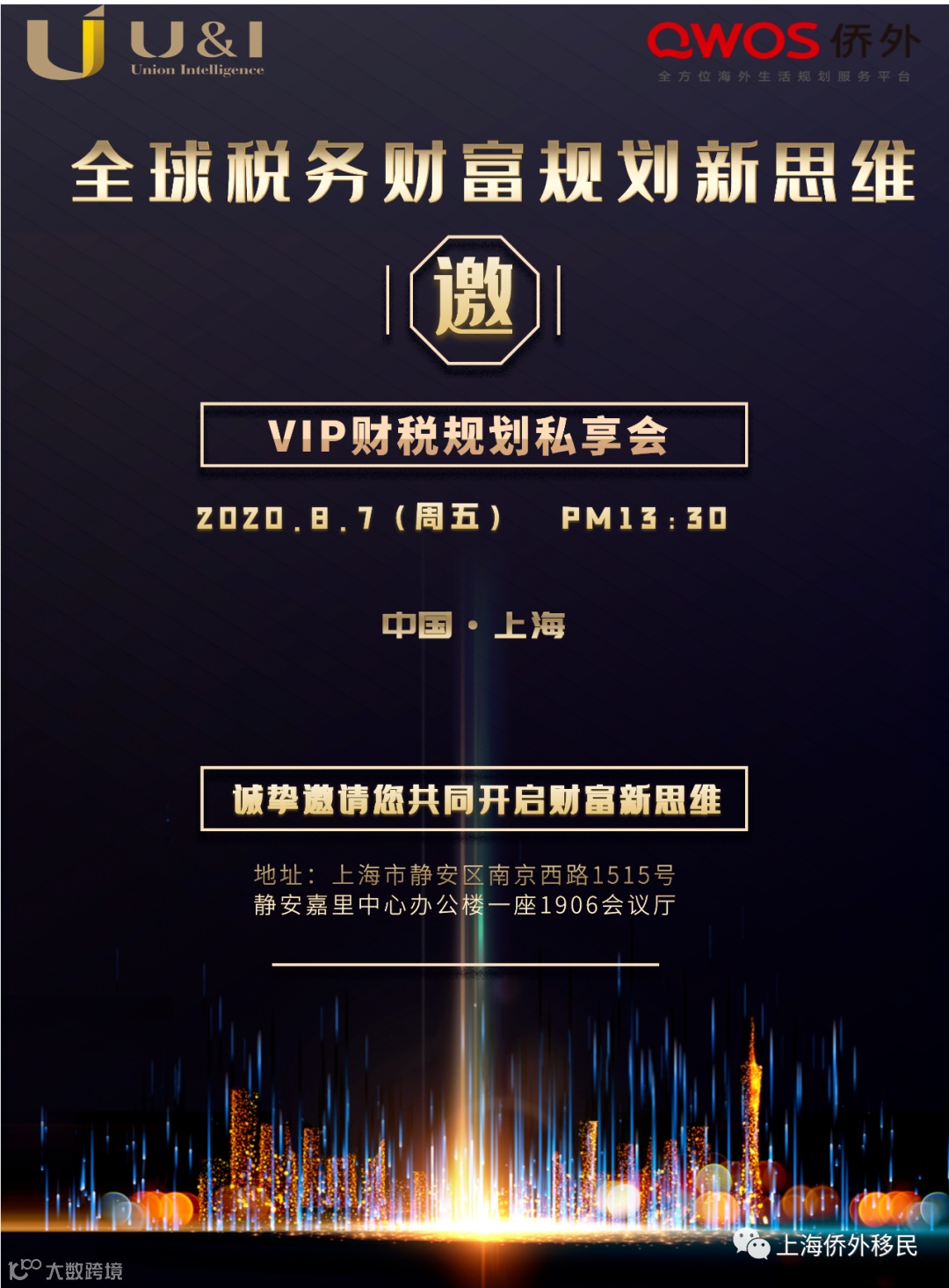 鉴于此,上海侨外于8月7日将在上海举行线下VIP一对一活动,特邀请财富领域的专家为您把脉人才与财富全球化的出国新趋势,提供财富规划与资产配置的最新动态。有兴趣的朋友快来报名吧!