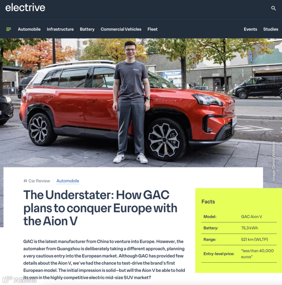 AION V以其卓越的续航能力、先进的快充技术、现代且宽敞的车内空间,以及安全可靠的设计,成为欧洲市场值得关注的紧凑型SUV。
