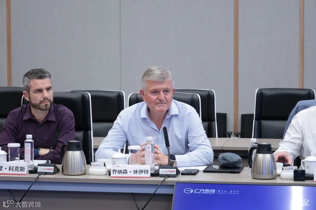 参观结束后,英国大昌研究中心CEO乔纳森・休伊特一行与广汽相关负责人围绕广汽欧洲市场发展核心目标展开深度座谈。广汽集团副总经理郁俊首先对英国大昌研究中心CEO乔纳森・ 休伊特的到访表示了诚挚的欢迎。随后双方以广汽深耕欧洲市场的战略需求为核心,就关键领域协同方向达成高度共识。