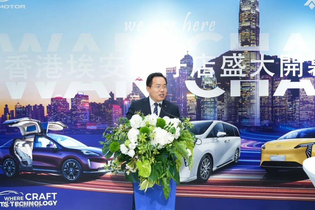 广汽国际总经理卫海岗在致辞中分享了广汽的国际化布局以及在香港的发展战略,他表示,“今天,广汽埃安在香港的第二家品牌展厅落地湾仔告士打道,进驻香港著名‘车街’,以高端形象展示广汽埃安的品牌实力,连接和服务更多香港消费者。我们期待与各位深化合作、携手共赢,见证广汽埃安与香港共同成长,为香港的新能源汽车发展贡献广汽力量。”