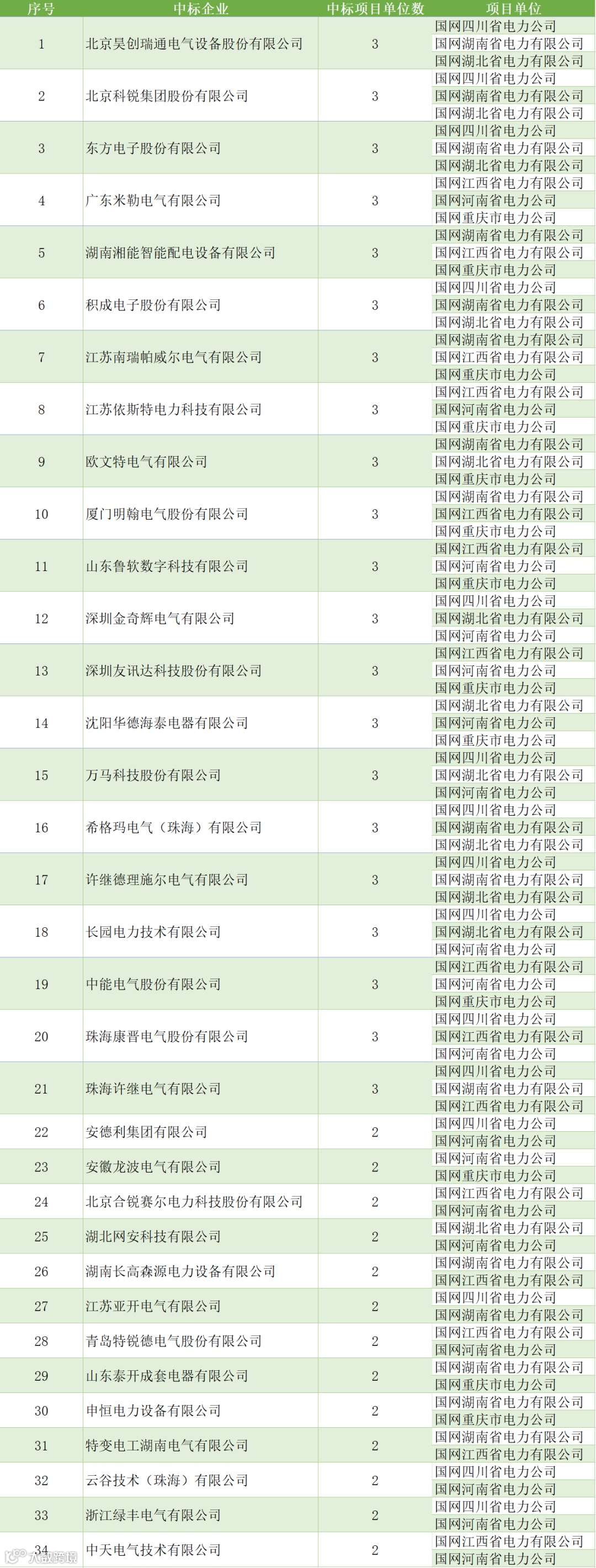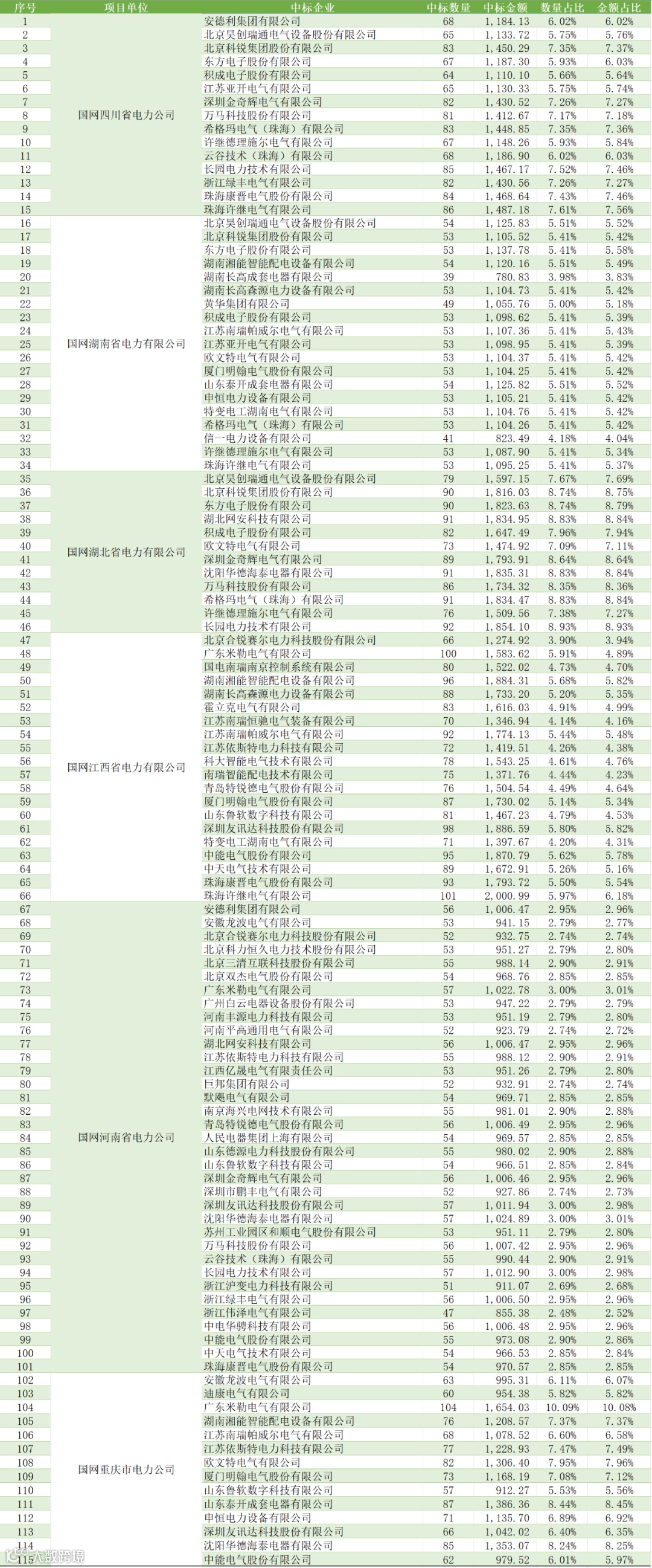 根据中标结果信息,华中、川渝区域一二次融合成套环网箱第二次区域联合招标项目共有60家企业中标。珠海许继电气有限公司中标金额最多。
