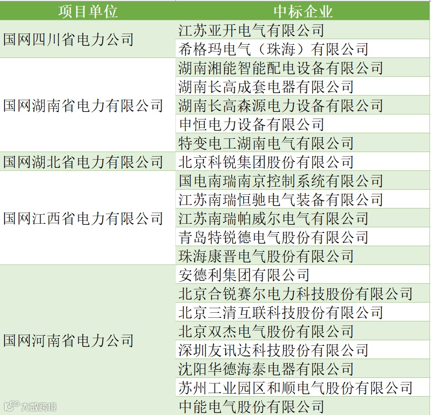 5家近五年未在国网范围中标一二次融合成套环网箱产品的企业中: