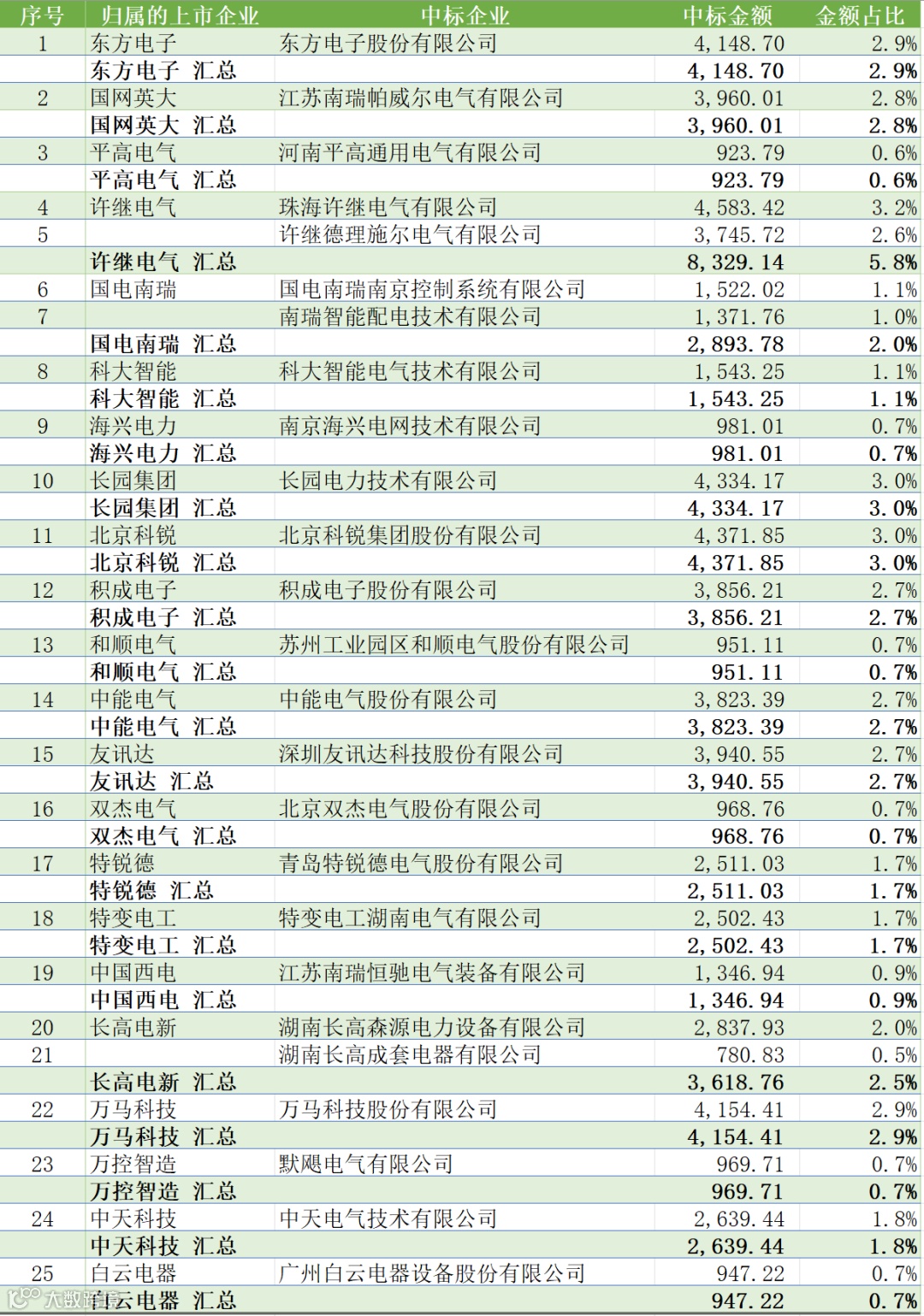 分析市场能力变化,2024年度中标企业中3家企业本次项目中标金额排名高于或与2024年度接近;1家近五年未在国网范围中过标的企业实现中标。详情如下:
