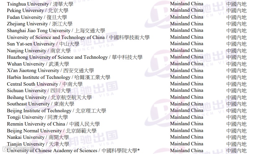 关于香港高才B类和C类,目前本科毕业于全球199所名校的申请人符合申请资格。其中,中国内地有23所本科院校符合申请资格,分别是清华大学、北京大学、复旦大学、浙江大学、上海交通大学、中国科学技术大学、中山大学、南京大学、华中科技大学、武汉大学、西安交通大学、哈尔滨工业大学、中南大学、四川大学、北京航空航天大学、东南大学、北京理工大学、同济大学、中国人民大学、北京师范大学、南开大学、天津大学和中国科学院大学。