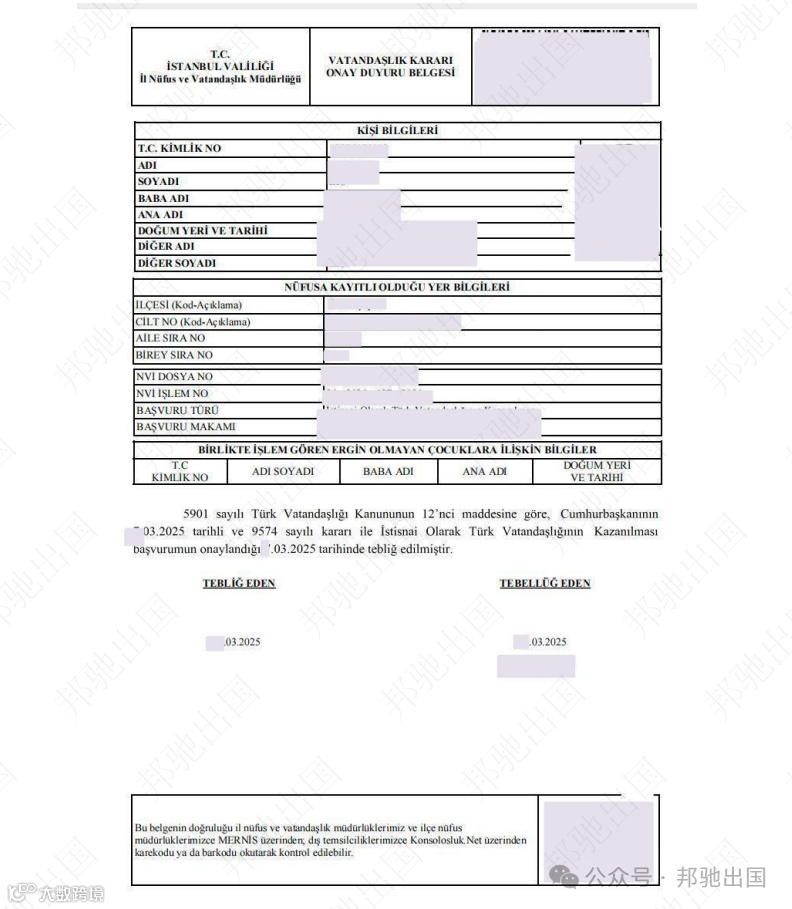 (邦驰出国土耳其存款移民客户成功收到入籍批复函)