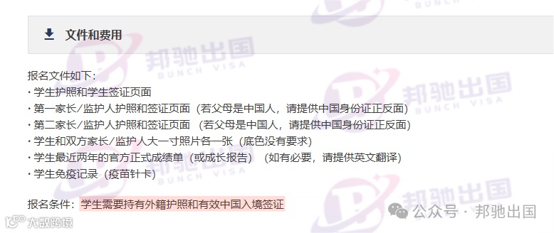 (申请国内某国际学校需提供外籍护照及来华签证)