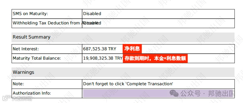 除此之外,银行还会扣除一小部分的手续费,所以客户定存32天获得的净利息为687,525.38里拉,详见后附的定存32天的凭证。存款到期后,客户可以通过网银将里拉兑换成美金,提前锁定美金收益,同时更新存期,再进行定存。