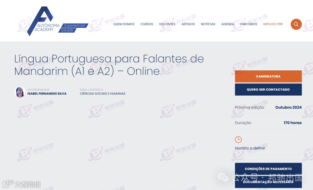 也可以参加里斯本自治大学的葡语课程,课程时长是170个小时,可线上远程学习。