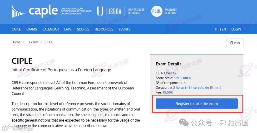 参加葡语A2语言等级考试