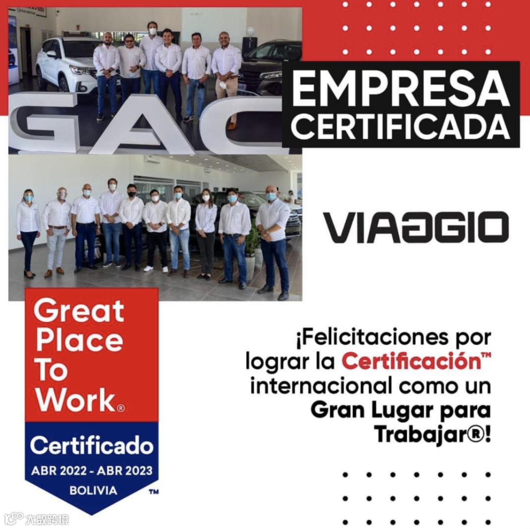 在广受关注的同时,3月,GAC MOTOR玻利维亚经销商Viaggio Motor被国际机构EMPRISING(西语EMPRESA) 评选为“玻利维亚2022年度最佳工作机构(Great Place to work)”。