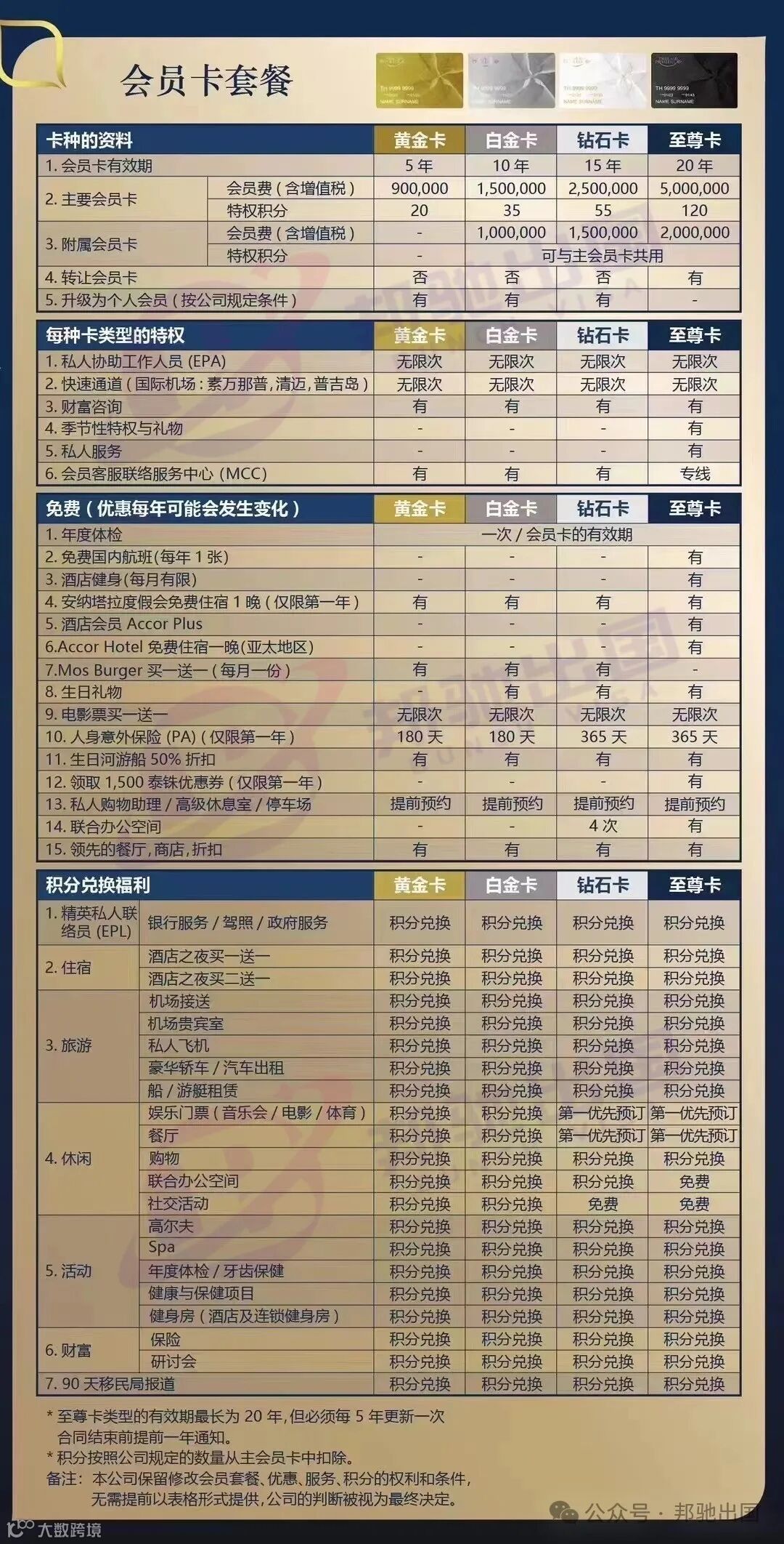 2023年10月1日起,泰国精英签会员费门槛全面上调,另外,新增加了15年期的会员卡: