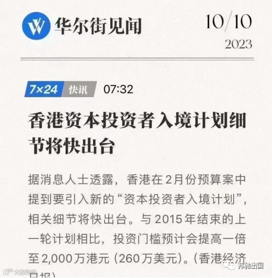我们业内人士预计,港府于10月25日发表施政报告,香港投资移民新政的全部细节或将公布。今天有新闻消息称,香港投资移民计划相关细节即将出台,投资门槛预计会提高至2000万港元,我们拭目以待。