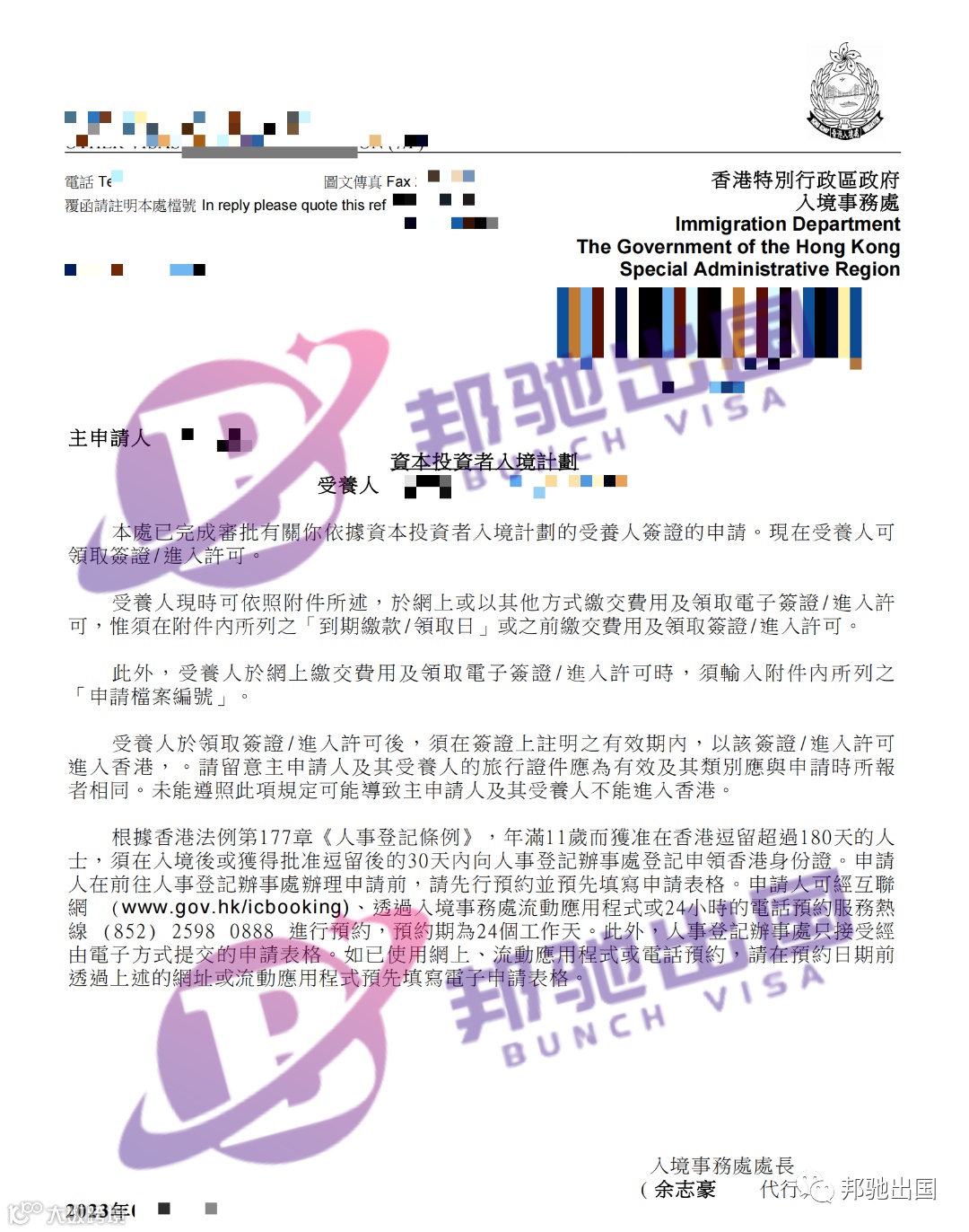 获得正式批复,领取香港签证,预约办理香港身份证;