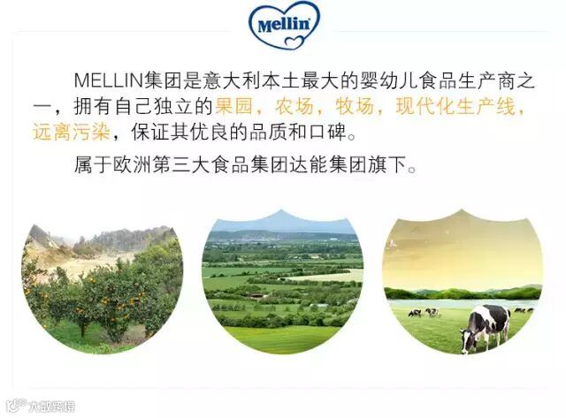 Mellin(美林)在1896年至今的120年里,已经累计帮助9000万欧洲宝宝健康成长,产品包括鱼泥、奶酪泥、水果泥、肉泥、肉松、面条、米糊以及配方奶粉等产品。所有产品均通过欧盟/中国的双重严格品质检测,安全放心!从某种程度上讲,Mellin就是辅食的代名词!