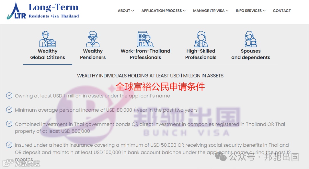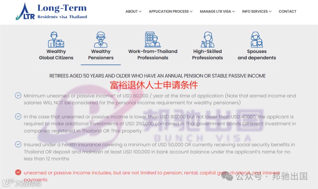后两类适合已经在泰国工作和生活的外籍人士,大部分申请人适用于前面两个类别:全球富裕公民或富裕退休人士,来看一下这两类人群的具体申请要求。
