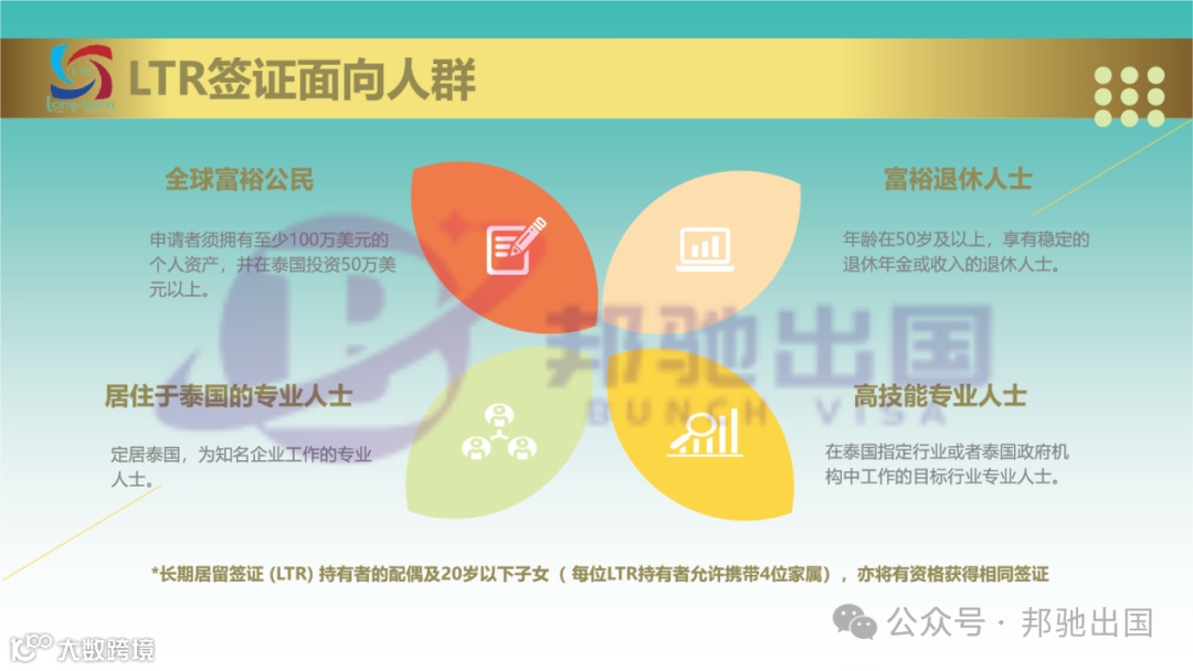 对比泰国精英签,泰国十年长期居留签证(LTR)的花费成本更低,是精英人士和退休人士定居泰国的高性价比项目!如果您有在泰国长居、投资买房、退休养老、教育陪读等需求,不妨考虑办理泰国十年长期居留签证(LTR)!更多关于泰国十年长期居留签证(LTR)的相关资讯,欢迎咨询我们邦驰出国。