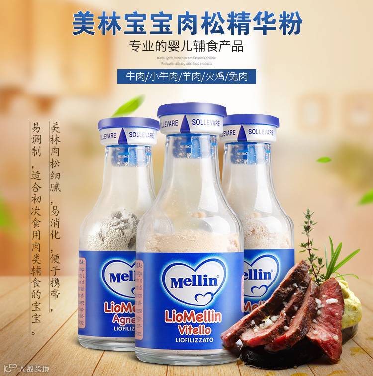 美林牛肉松应该叫牛肉精华粉,100克相当于230克牛肉的营养,超细的肉松粉,别看小小的1瓶,内容可是浓缩的精华,易吸收,易调制。意大利的肉松很细腻,而且量少,普遍宝宝的接受程度比较高,出门携带也方便,大小宝都能吃,开封以后3天吃完就可以,吃得方式也多,夹面包,放米粉里面,直接吃都是可以的。
