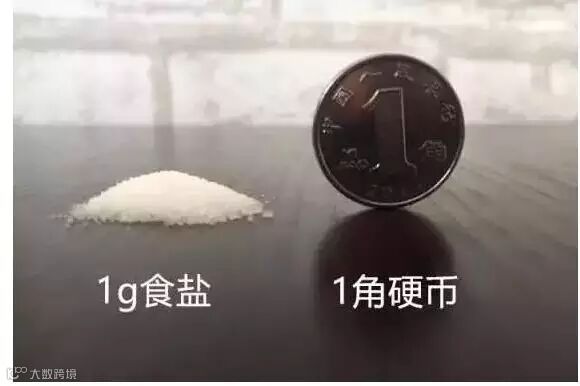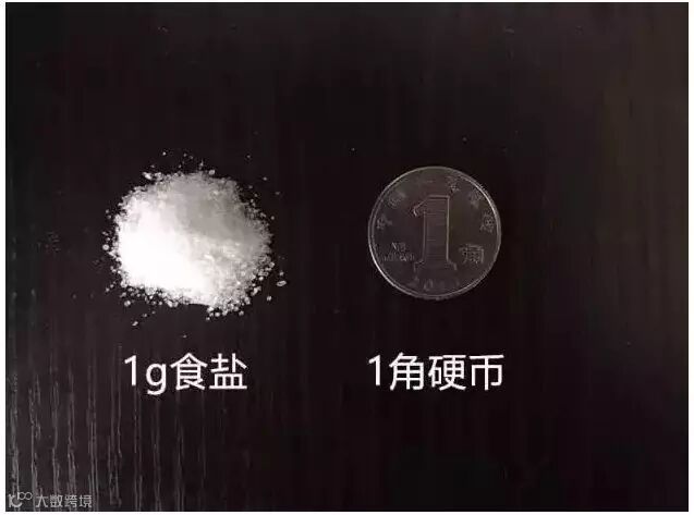 1g盐与一角硬币对比。