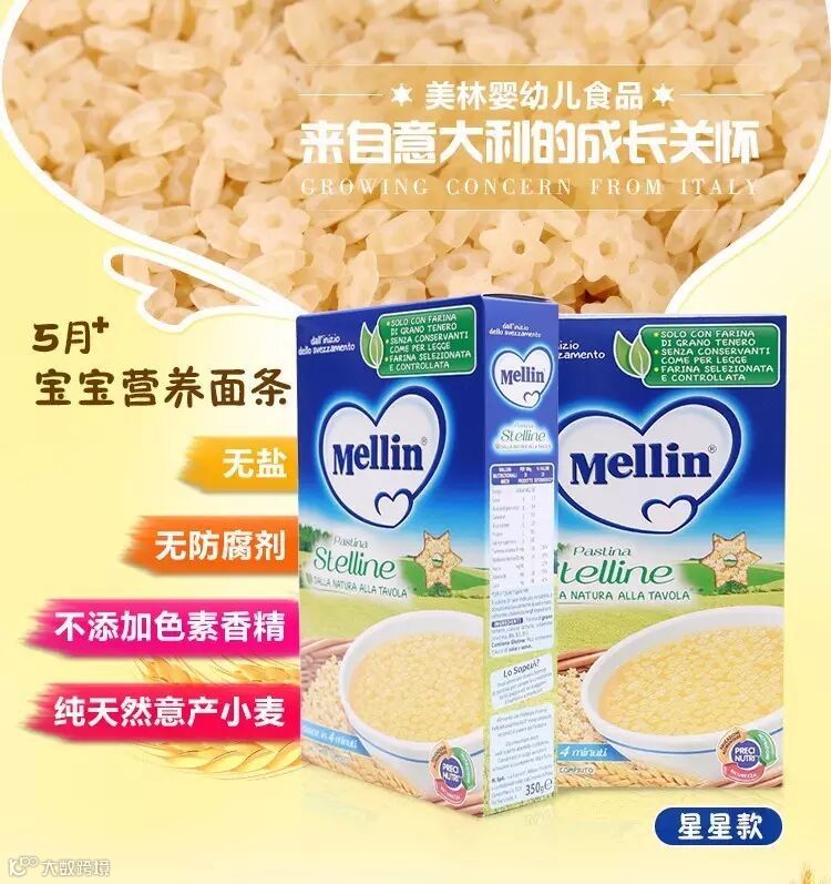 意大利人更倾向于MELLIN,出院时医院会对没有母乳的妈妈在处方上写上建议婴儿服用MELLIN的奶粉,而且在宝宝添加辅食时,医生也很明确的提出选择此品牌的产品,意大利人谈起给宝宝添加的是什么辅食时,就连60多岁的妇女都会问:开始添加MELLIN了吗?虽然意大利的婴儿食品从不打广告,可是这有着一百多年历史的品牌却是家喻户晓,成了意大利婴儿食品的代名词。