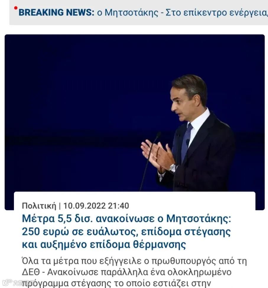 希腊当地时间9月10日下午,希腊总理米佐塔基斯在第86届塞萨洛尼基国际博览会上宣布了21项措施,旨在缓解学生、老人和弱势群体的生活压力,以及帮助改善就业问题和刺激企业的发展。