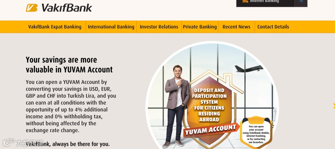 土耳其Vakif Bank银行是土耳其第五大资产银行,资产总额为460亿美元,在土耳其国内拥有610家分行。