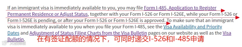 EB-5旧法案规定,申请人需要先递交I-526,获得批准后才能申请I-485。如今新法案明确规定,申请人在递交I-526E申请时,如人在美国境内,可以同时递交I-485身份转换申请,递交申请后可合法留在美国,同时还可以申请I-765工卡留在美国合法工作,申请I-131提前离境许可自由出入美国。