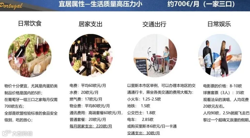 Ø 全球209个大城市中,葡萄牙首都里斯本的生活成本位列第106位,华人是葡萄牙最大的移民群体之一,葡萄牙政府积极推广汉语,加强文化融合,民风友善热情,英语普及程度高。