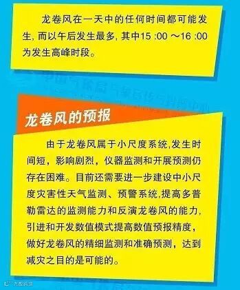 (3) 在野外遇龙卷风时,应就近寻找低洼地伏于地面,但要远离大树、电杆,以免被砸、被压和触电。