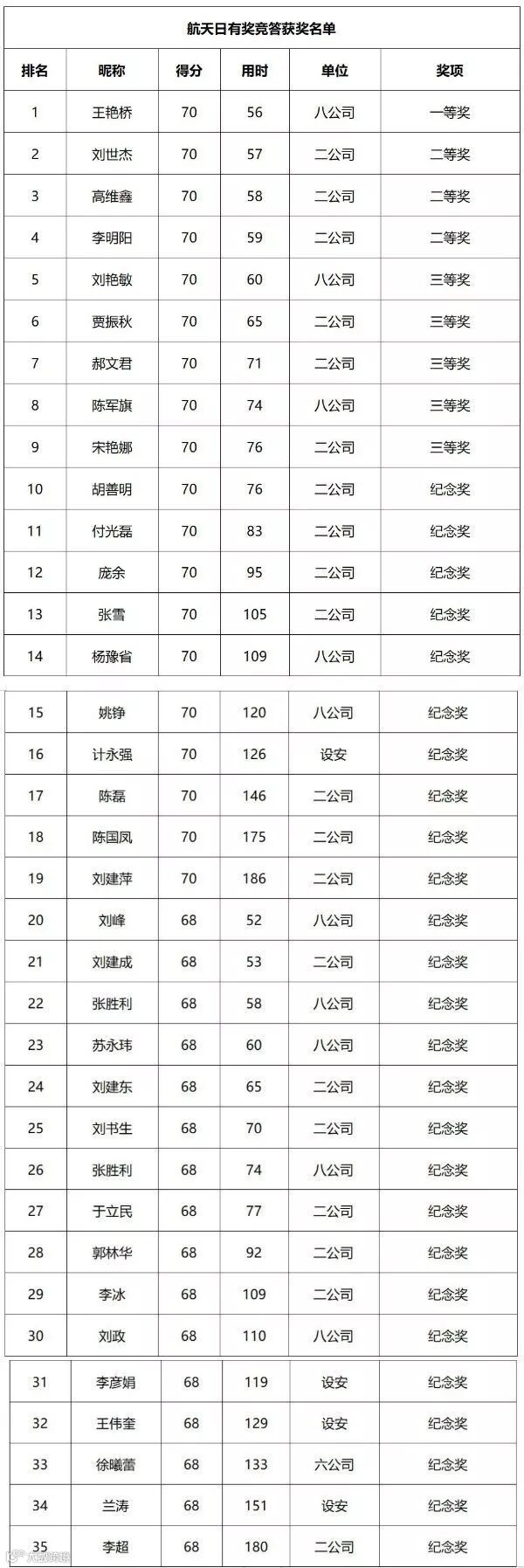 航天日有奖竞答获奖名单