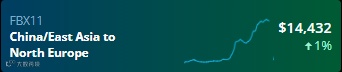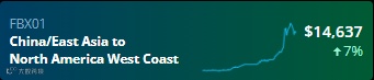 最新运价为每40英尺14432美元,高于上期14269美元,小幅上涨1%。