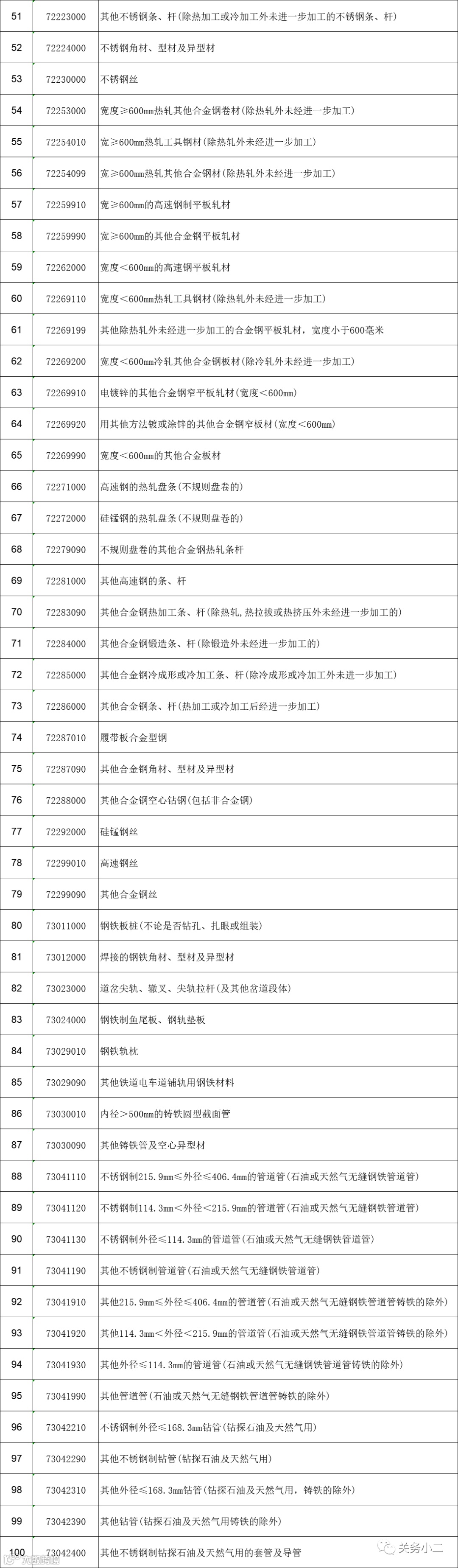 生铁、粗钢、再生钢铁原料、铬铁等产品实行零进口暂定税率;