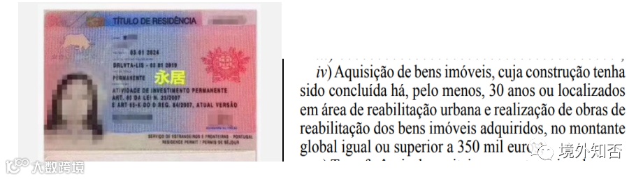 葡萄牙购房投资移民政策------葡萄牙移民局于2015年更新了黄金居留许可法案,法案规定,“通过购买房产建筑年限已超过30年以上的,或位于城市重建区域的房产,房产总值须达到35万欧或以上,即可申请黄金居留许可。”通过购置房产获取投资居留许可的方式,总价须达到35万欧或以上,且应包含房产翻新/建筑物更新改造费用。房产的建筑时间为30年或更久。如果项目地理位置位于人口低密度区,并且房龄在30年以上,房产价值加翻修成本,总价值达到28万欧,即可办理移民。