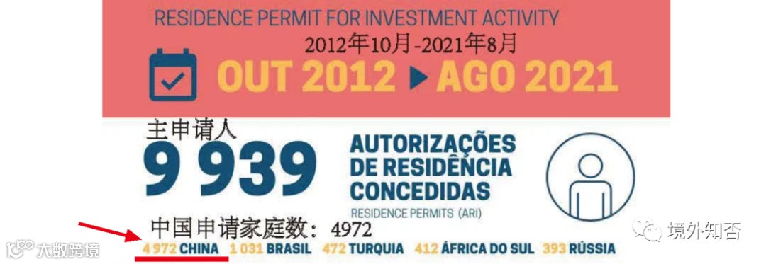 自2012年10月法案颁布至2021年8月这9年多的时间里,葡萄牙共累计发放26780张黄金居留卡。排名前五的分别是中国、巴西、土耳其、南非和俄罗斯,其中居首位的是中国籍主申请人,占到4972位。