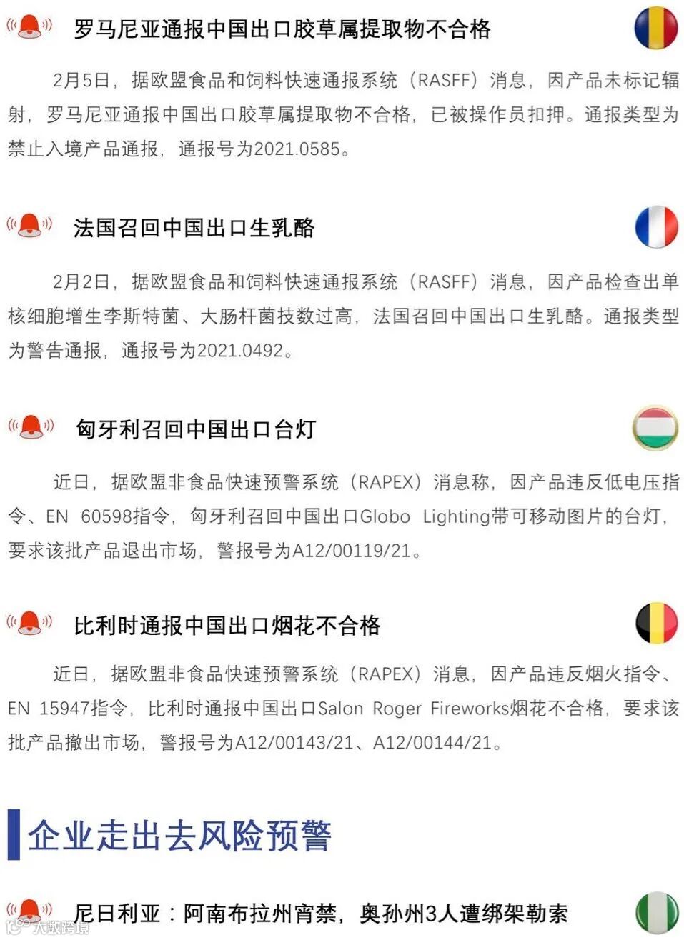 导读:经贸摩擦预警快报