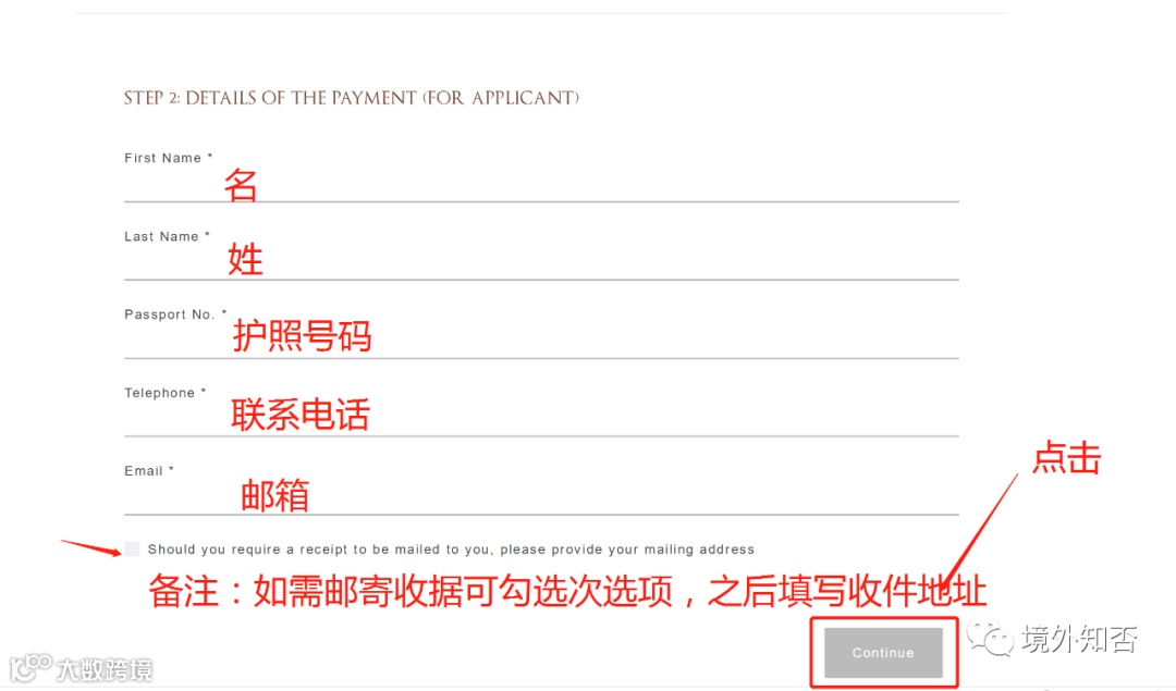 2,输入申请人的姓名,护照号码,联系电话和邮箱: