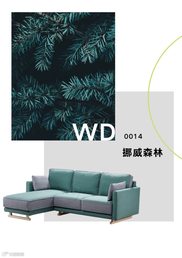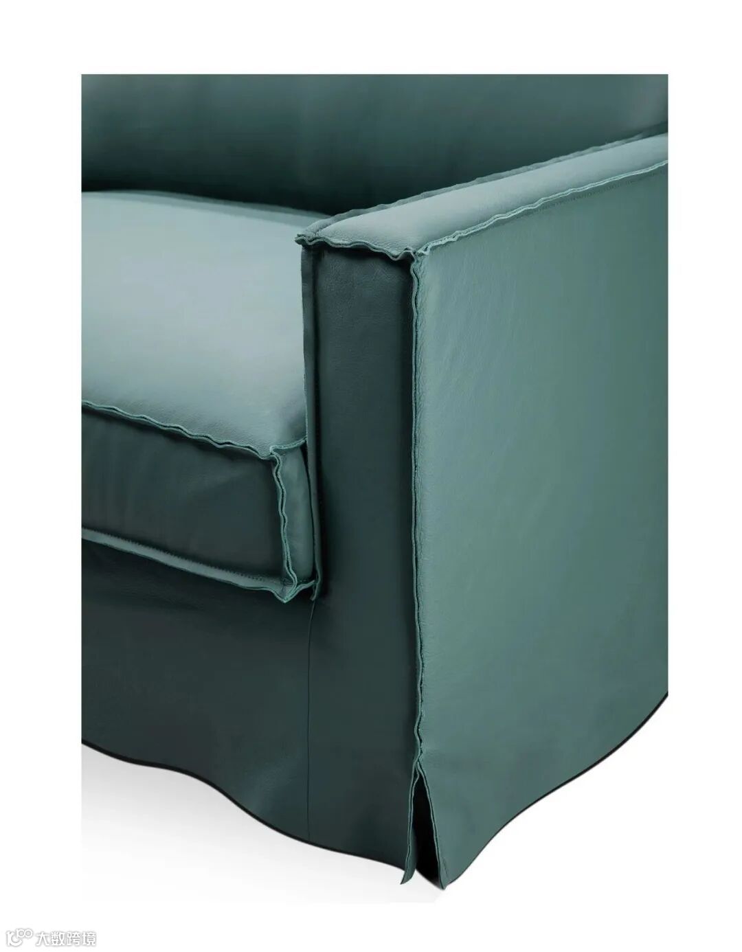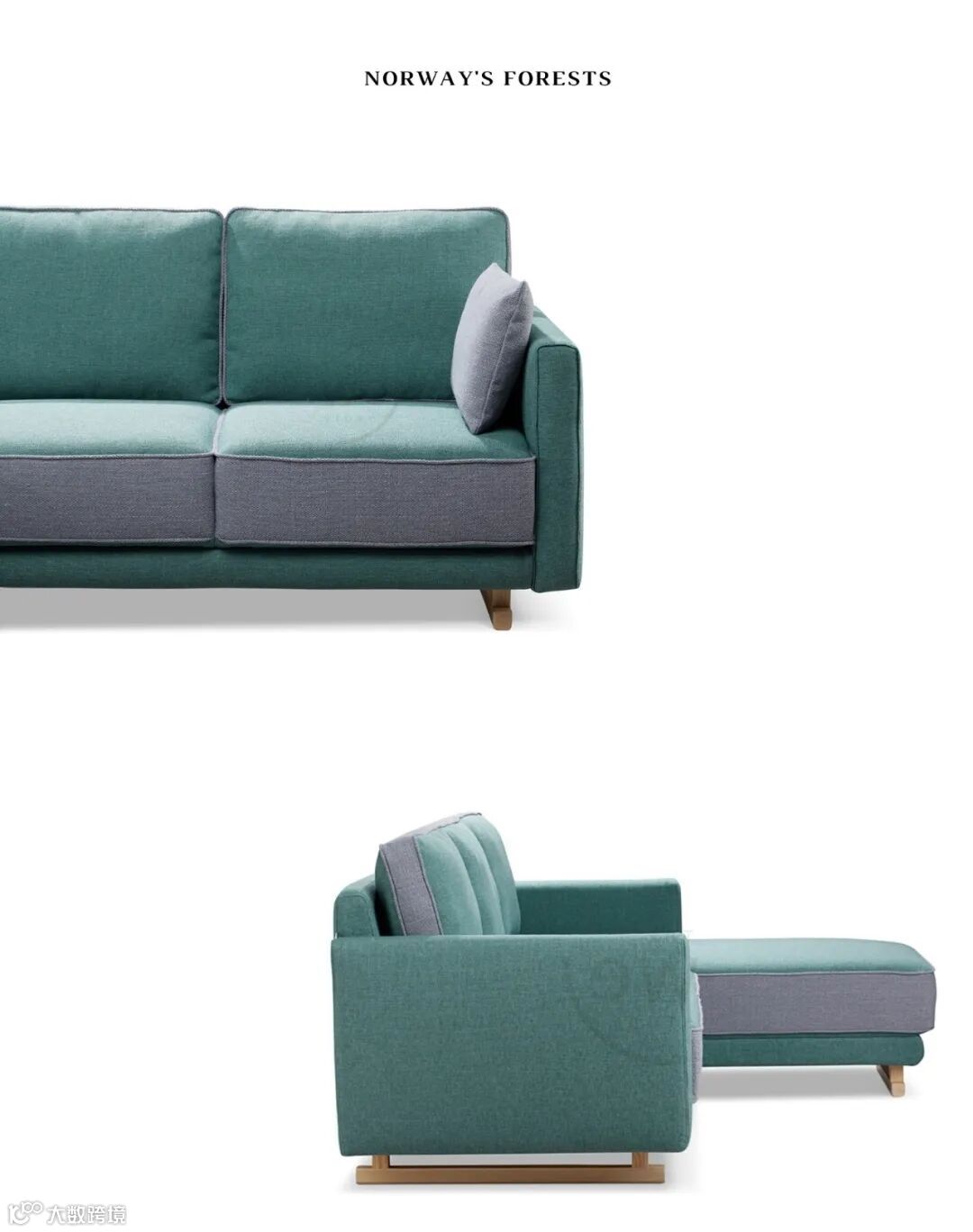 双色搭配,沙发更有层次感。灰色是黎明前的宁静大地,旷远而深沉,绿色是天亮后生机勃勃的森林,明净自由。既有平直的线条,又不乏曲线之美,将直线与曲线相平衡,令沙发层次丰富。