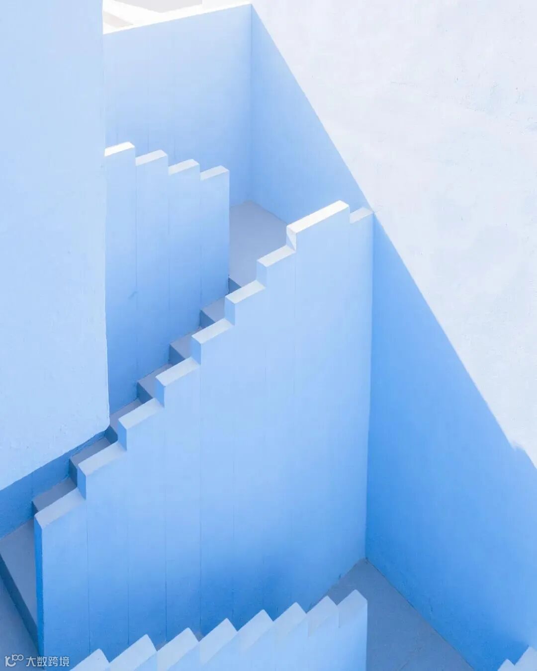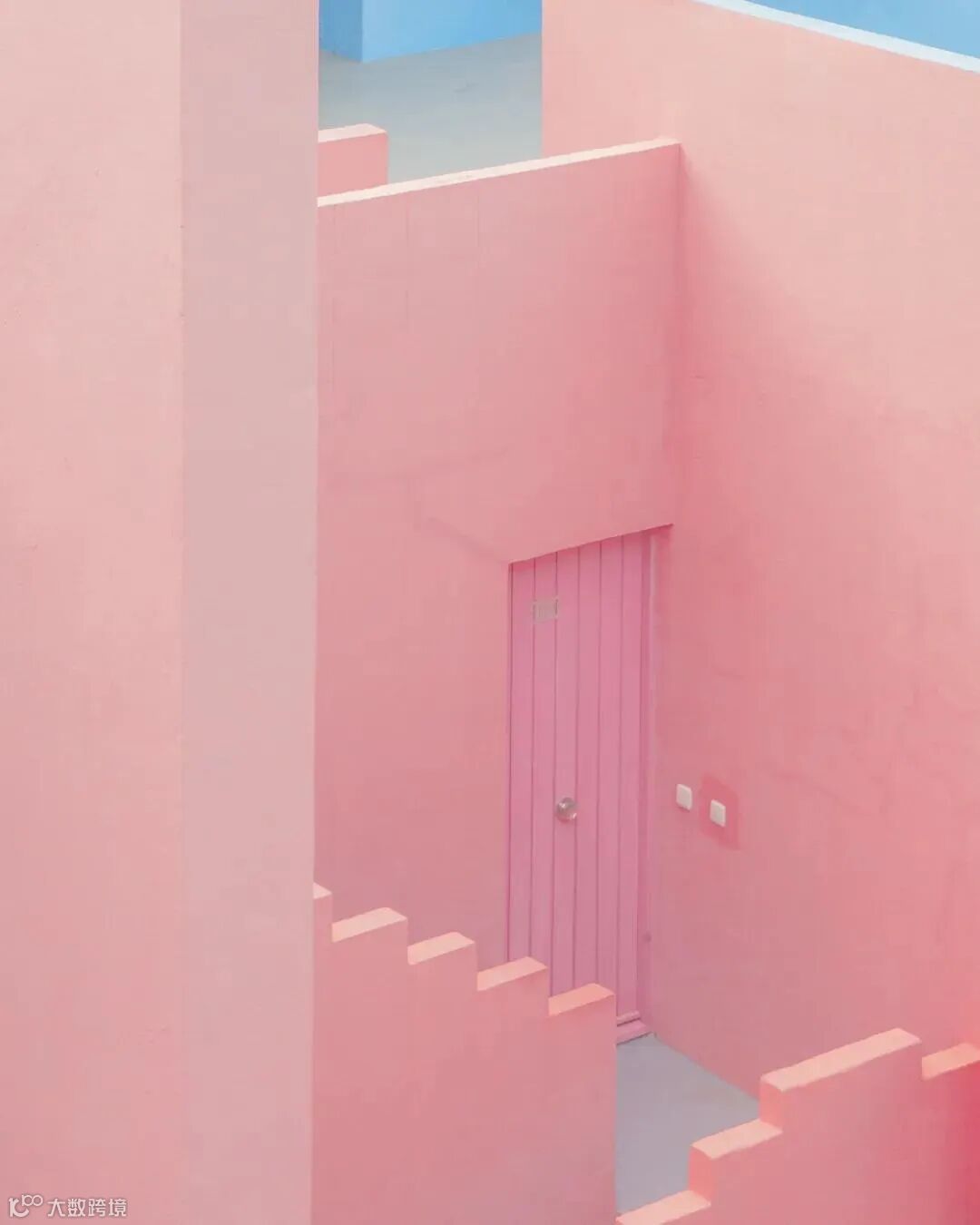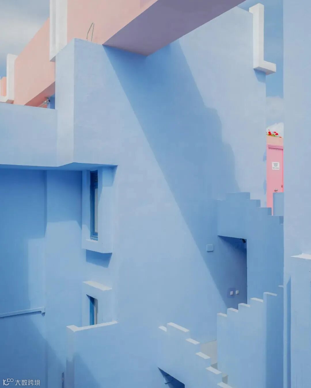 整个建筑充满几何趣味,其外墙被粉刷成不同层次的粉色、蓝色、散发着独特的魅力。由于建筑环境变幻无穷,光照及天空的颜色对建筑产生极大的影响,以至于出现各种魔幻般的色彩对比,而这种变化,也奠定了建筑的艺术属性及魅力。