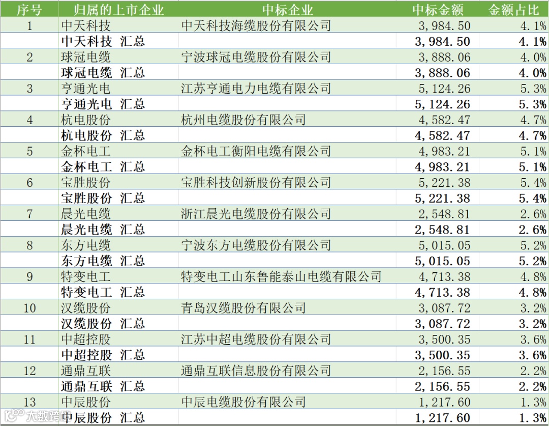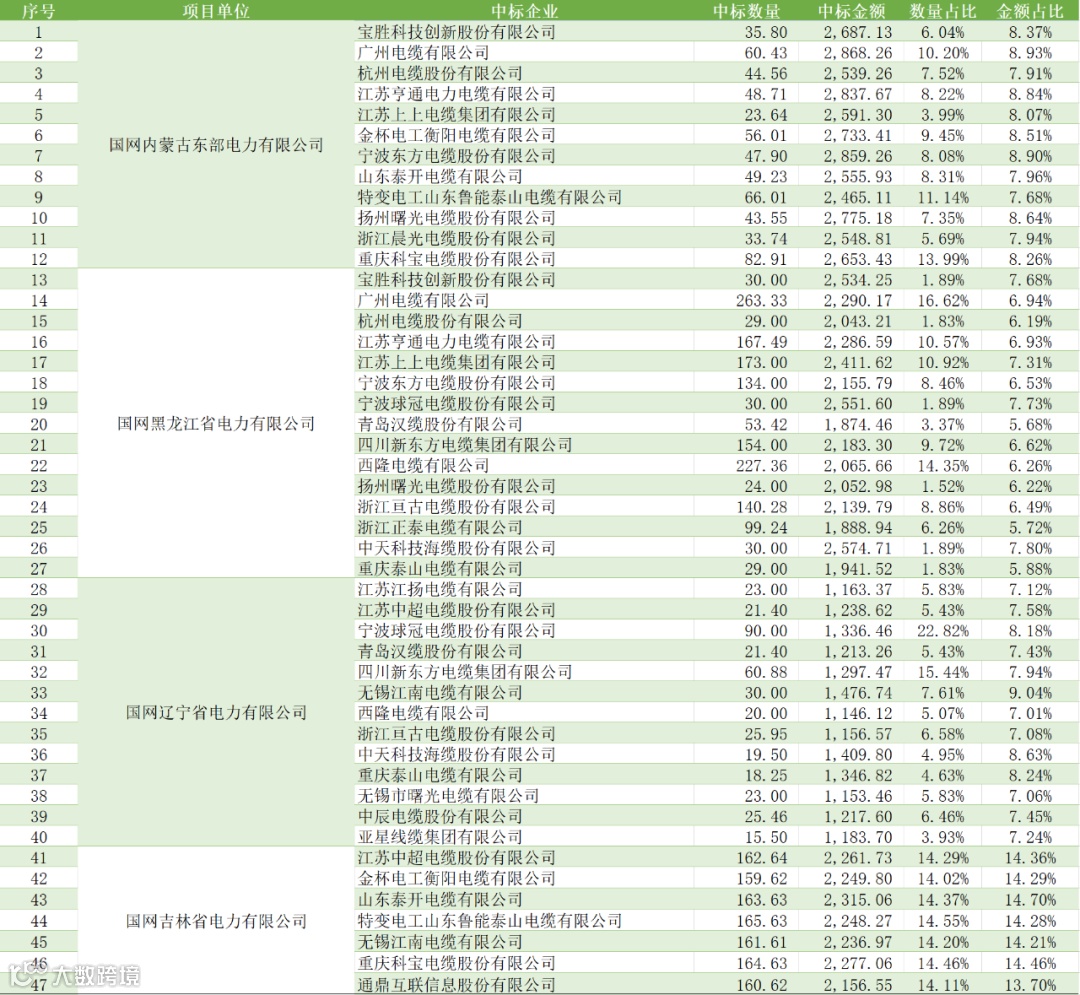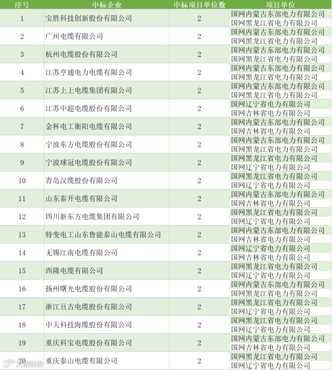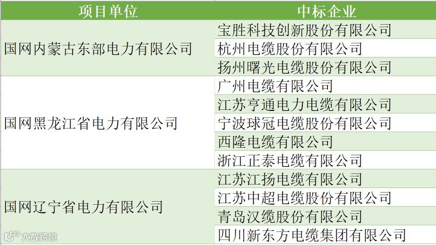 具体到各项目单位的中标情况,蒙东项目共有12家企业中标,黑龙江项目共有15家企业中标,辽宁项目共有13家企业中标,吉林项目共有7家企业中标。