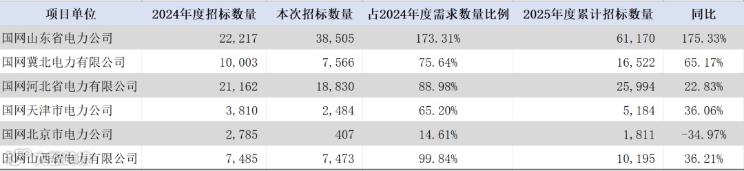 综合2025年度一二次融合成套柱上断路器的需求情况,华北区域招标主要的需求来源为山东,占比约50.6%。