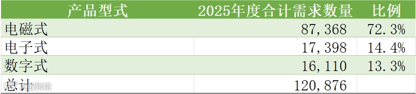 综合2025年度一二次融合成套柱上断路器产品型式情况,华北区域招标主要需求的产品型式为电磁式,整体占比约72.3%。同时电子式、数字式需求数量所占比例都超过了10%。