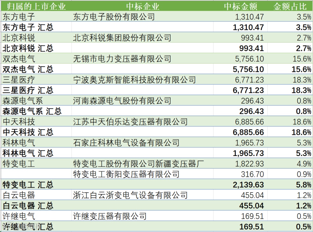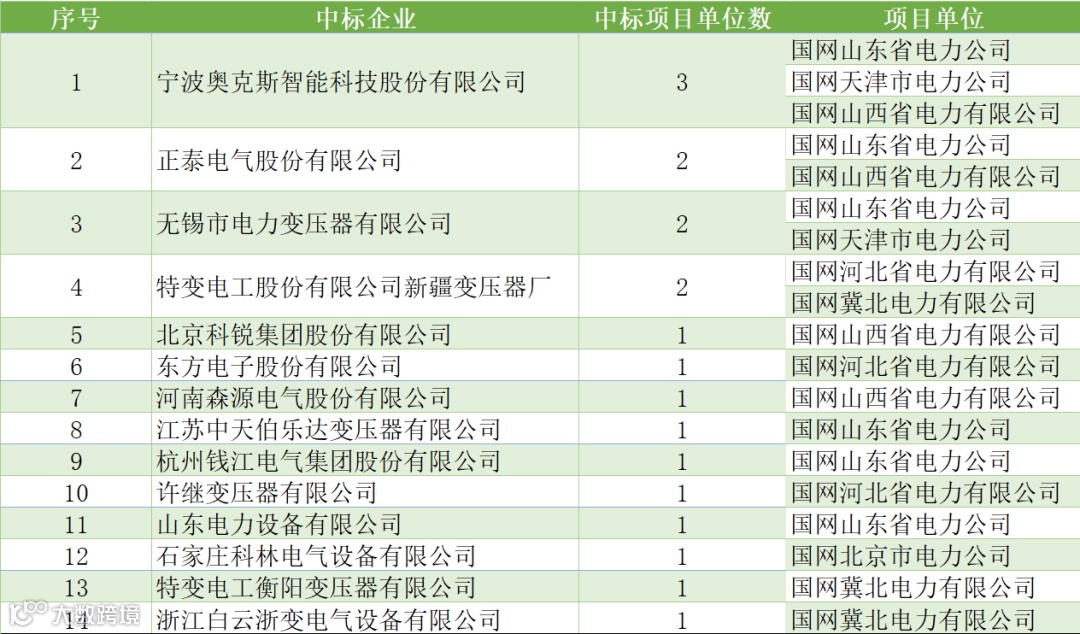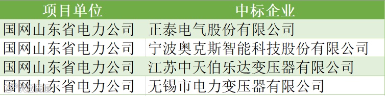 具体到各项目单位的中标情况,河北项目共有3家企业中标、山东项目共有6家企业中标、北京项目共有1家企业中标、冀北项目共有3家企业中标、天津项目共有2家企业中标、山西项目共有4企业中标。以下是各项目单位详细中标情况。