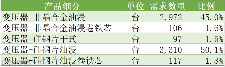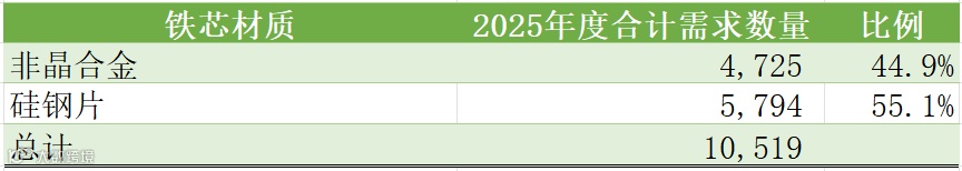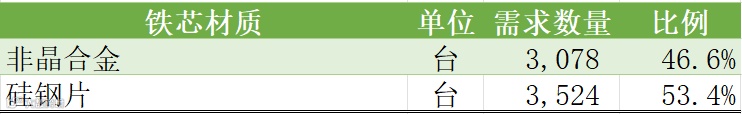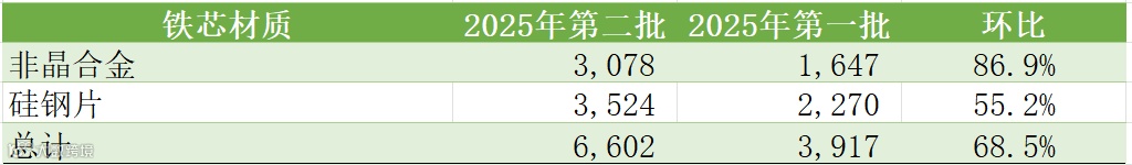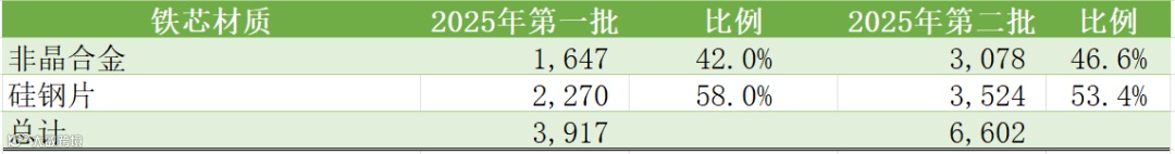 对比不同铁芯材质变压器在2025年度两个批次的需求情况,本批次需求量都有所增长。