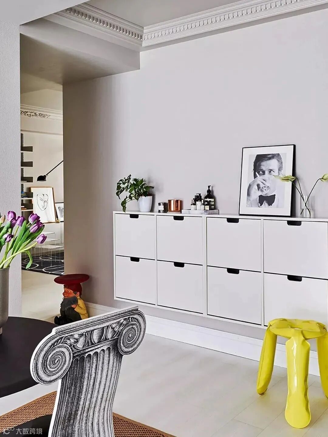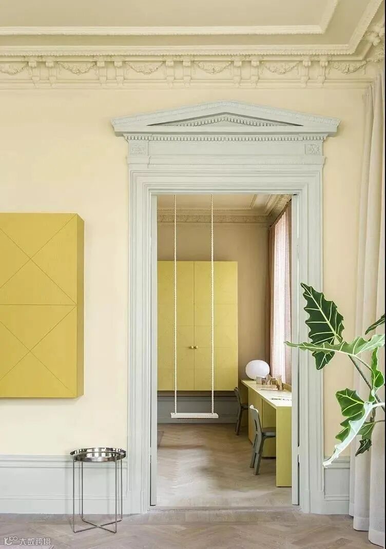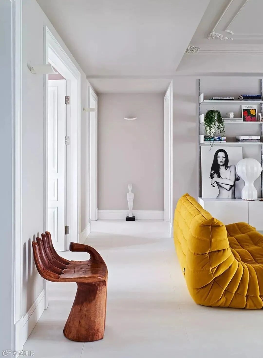 细节处见真章,黄色的点亮,跳跃于灰色空间,让人忍不住碰触。不同房间的色块帮助场景与感觉的切换,张弛有度。
