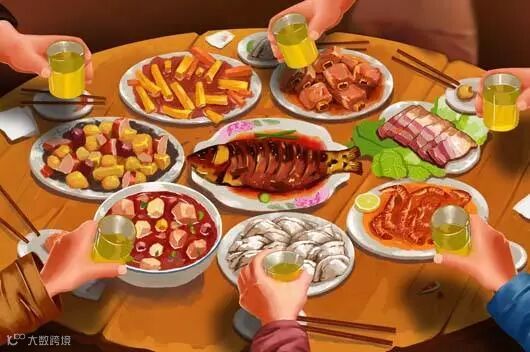 在北方,大年夜全家人守岁要围坐在一起边看春晚边包饺子,为了讨吉利,北方人往往把硬币、糖、花生、枣子、栗子和肉馅等,包入新年的饺子内。
