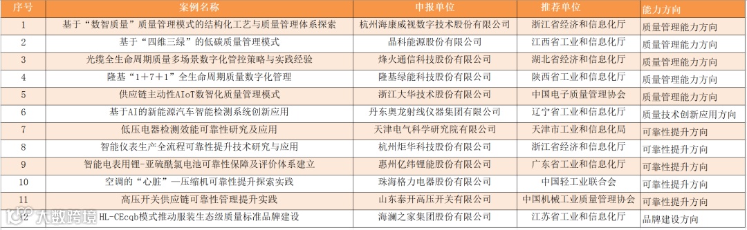 质量提升与品牌建设典型案例。其中质量管理能力方向30家,
