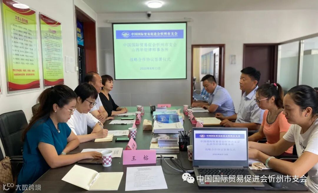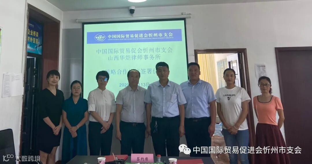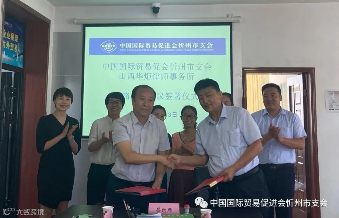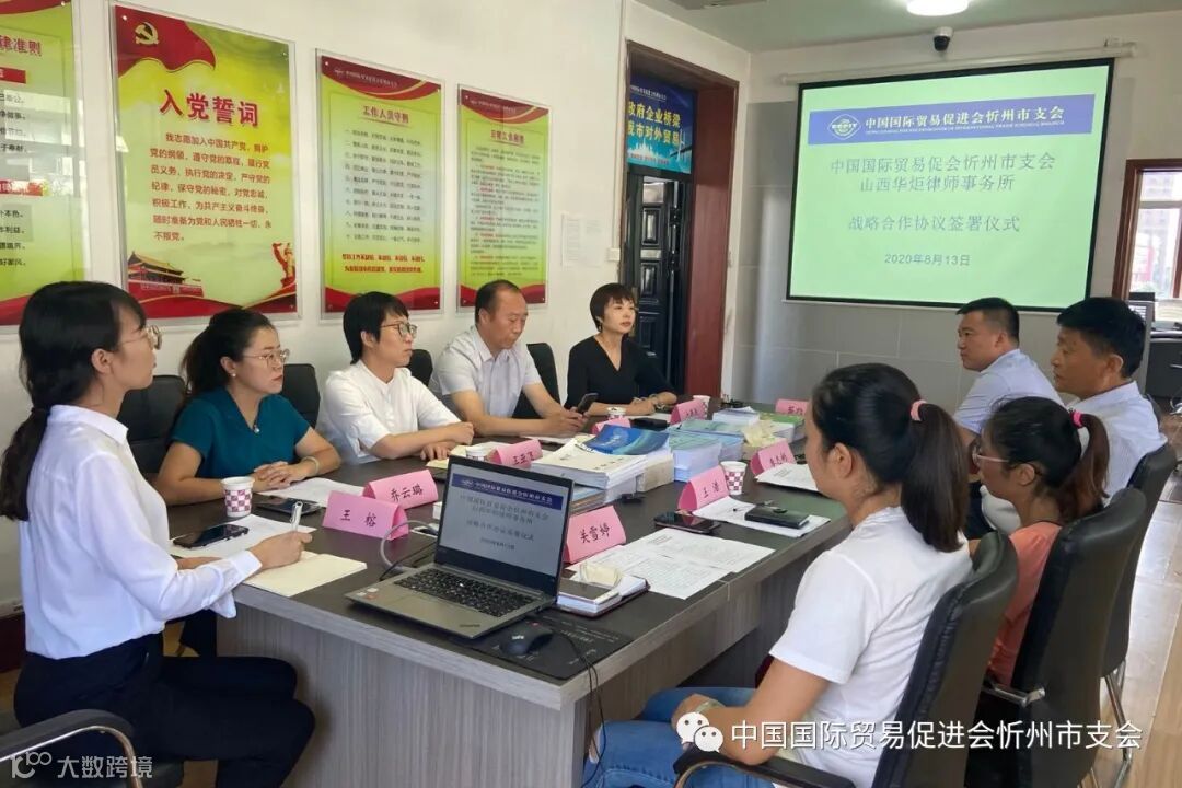 2020年8月13日上午,中国国际贸易促会忻州市支会与山西华炬律师事务所进行战略合作协议签署仪式。出席此次战略合作协议签署仪式的领导有山西华炬律师事务所主任孙智,山西华炬律师事务所高级合伙人、国际部主任王亚飞,山西华炬律师事务所主任助理马源辰,山西华炬律师事务所国际部行政秘书王榕,山西华炬律师事务所律师乔云璐,忻州市贸促会会长李志彬,忻州市贸促会副会长王小龙,忻州市商务局外资科科长王浩,忻州市商务局外贸科负责人关雪婷。仪式由中国国际贸易促会忻州市支会副会长王小龙主持。