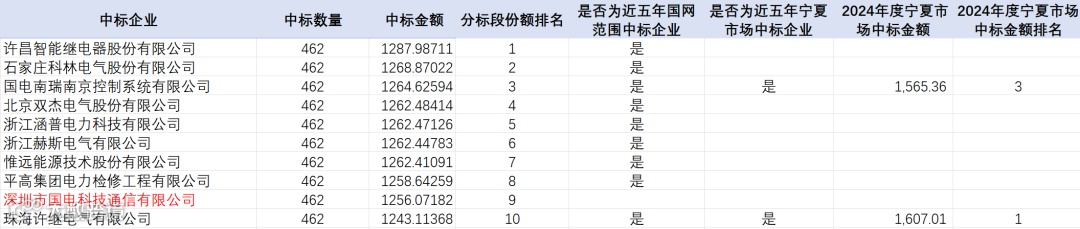 分析市场能力变化,2024年度中标企业中1家企业本次项目中标金额排名高于或与2024年度接近;0家近五年未在国网范围中过标的企业实现中标。详情如下: