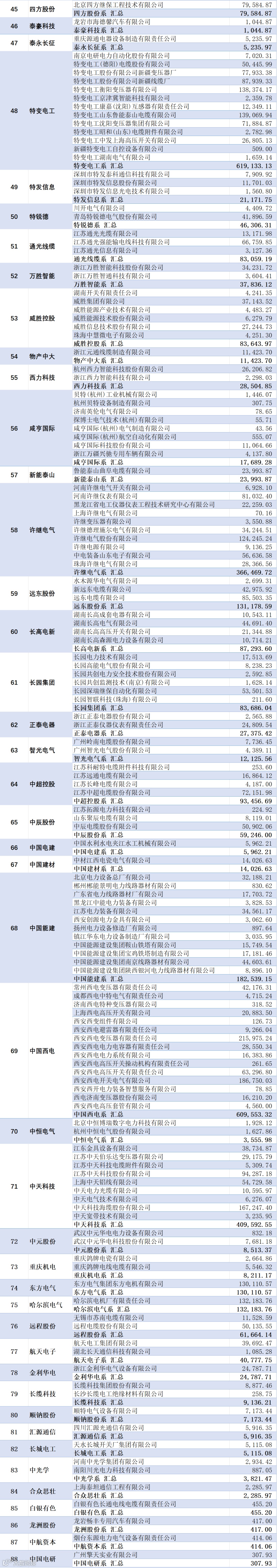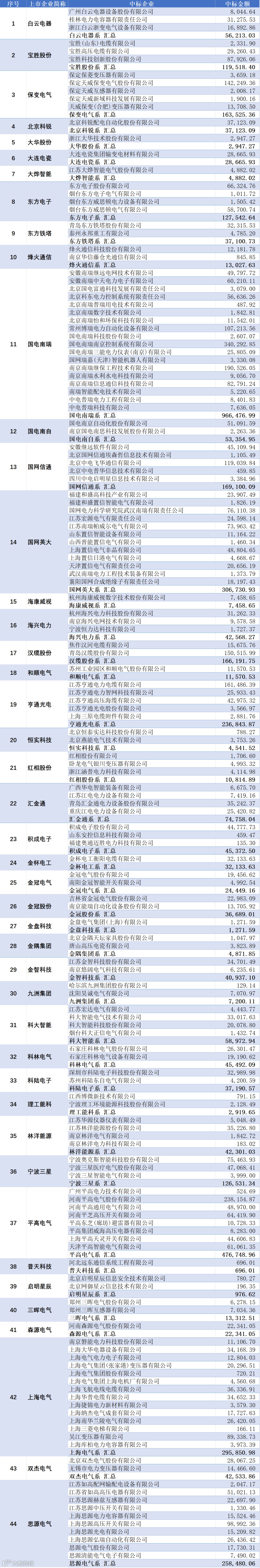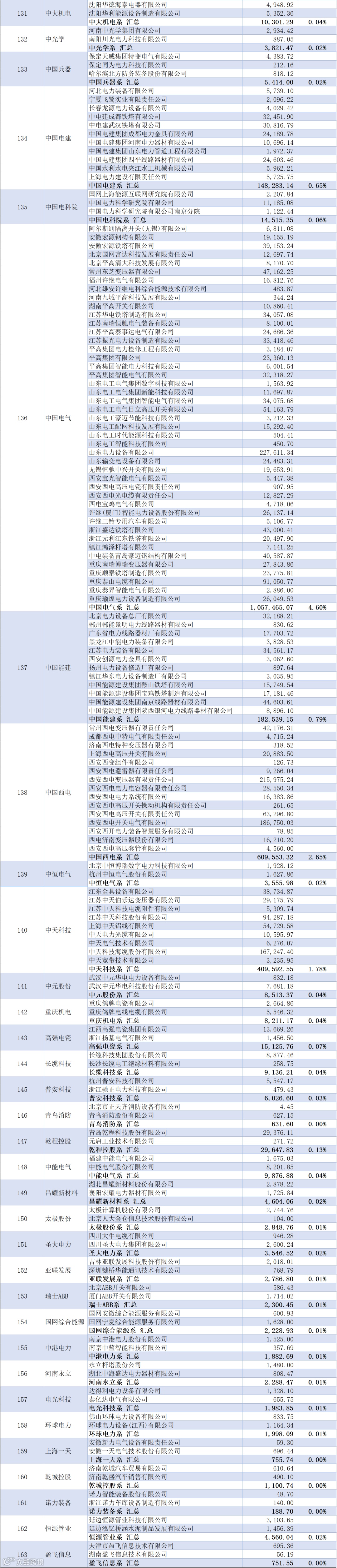中国电气系共有44家企业中标,合计中标金额约105.75亿元,占比约4.6%。